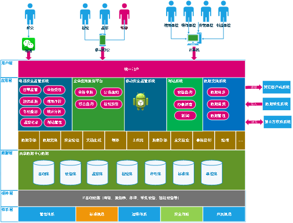五大子系统与四种权限用户之间依托GIS地理信息系统和大数据处理技术,配合视频监控与远程终端响应机制,实现数据共享和协同交互,有效的提高了工作效率,充分发挥了智慧监管的优势,符合绿色可持续发展的监管理念,值得在全国推广。